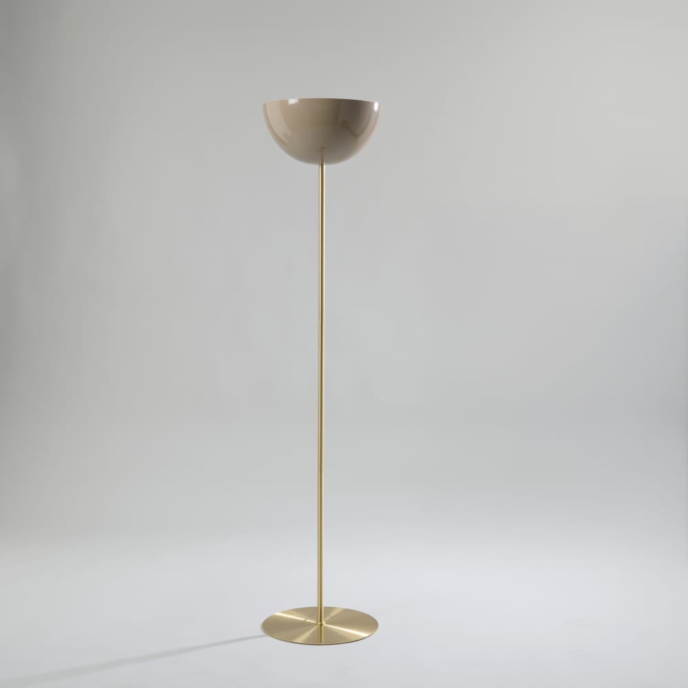 Lampada da terra a forma di campana in acciaio beige e oro alt. 133 cm