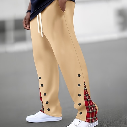 Per uomo Motivi a griglia / plaid Stampa di bottoni finti Pantaloni Pantaloni casual Misura del girovita medio Vita elastica con coulisse Casual All'aperto Ferie Pantaloni a gamba dritta Primavera