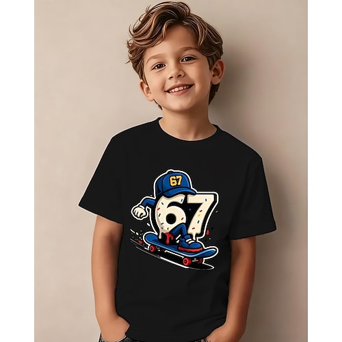 Cotone Bambini Ragazzi Nero Grafico Gergo divertente 67 Maglietta Blusa Girocollo Manica Corta All'aperto Abbigliamento Quotidiano Moda Streetwear Designer Stampa Estate