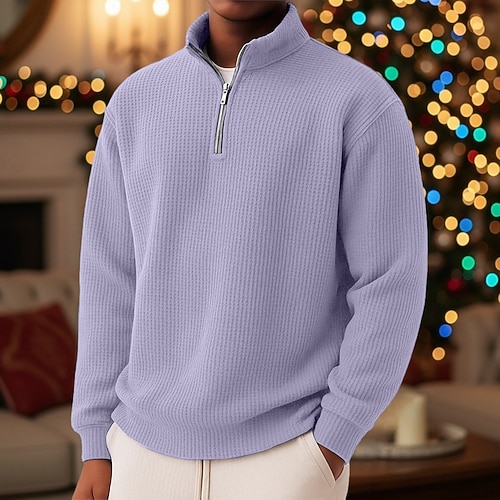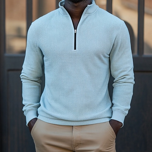 Per uomo Magliette Polo a Nido d'Ape Polo con zip Sport all'Aperto Casuale Colletto Mao Zip a un quarto Manica Lunga Moda Moderno Tinta unica Lavorato a maglia Autunno Primavera Autunno Vestibilit