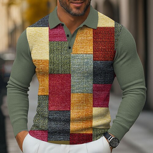 Per uomo Geometrico Magliette Polo a Nido d'Ape Manica Lunga Magliette polo Colletto Vintage Casual Vacanza Abbigliamento da sera Abbigliamento Quotidiano Bottoni Stampa 3D Primavera Autunno Inverno