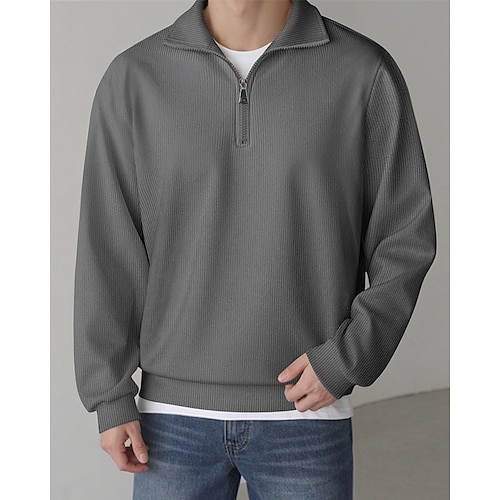 Per uomo Polo Sportivo Polo con zip a un quarto Strada Da mare Chiusura lampo quarto Manica lunga Di tendenza Essenziale Tinta unica Tasche Primavera Autunno Standard Borgogna Verde Grigio scuro