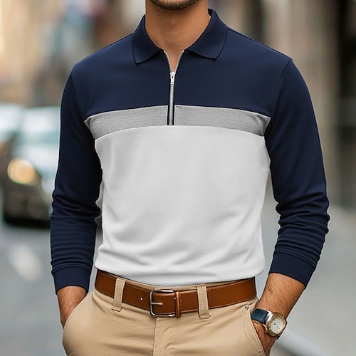 Per uomo Polo in misto cotone Polo con zip a un quarto Casuale Vacanza Zip a un quarto Manica Lunga Moda Essenziale Blocco di colori Tasca Inverno Primavera Autunno Autunno Inverno Vestibilit