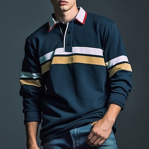 Per uomo A righe Polo da rugby Manica Lunga Magliette polo Camicie con Colletto Casual All'aperto Athleisure Stampa 3D Primavera Autunno Inverno Nero Blu Verde