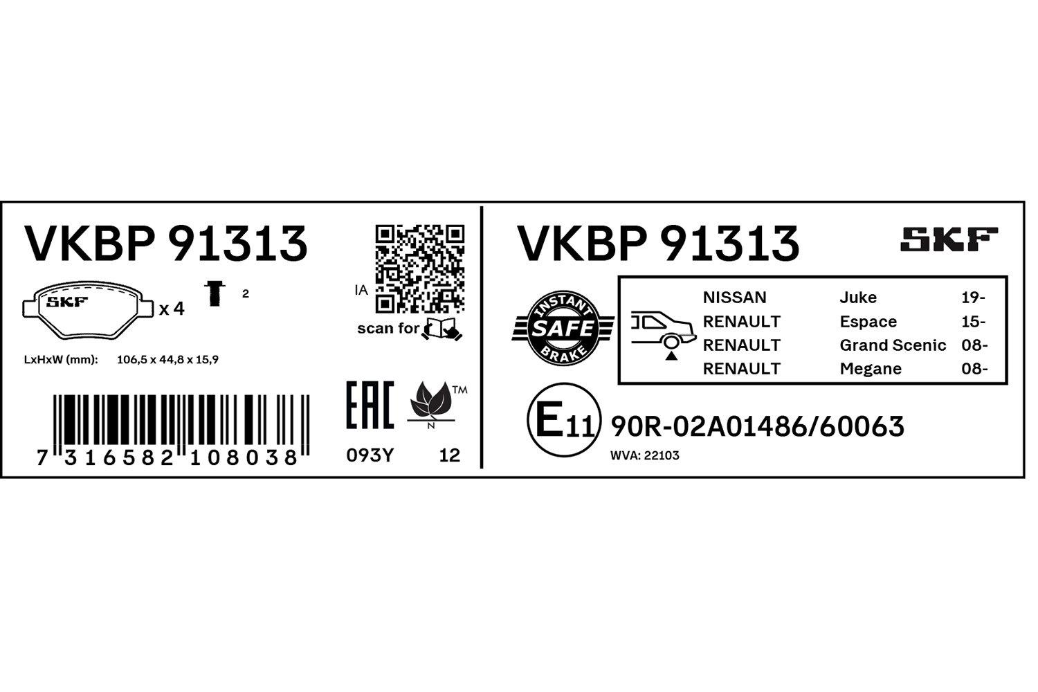 SKF Bremsbelagsatz, Scheibenbremse VKBP 91313 hinten rechts links für NISSAN 44060-00Q3C