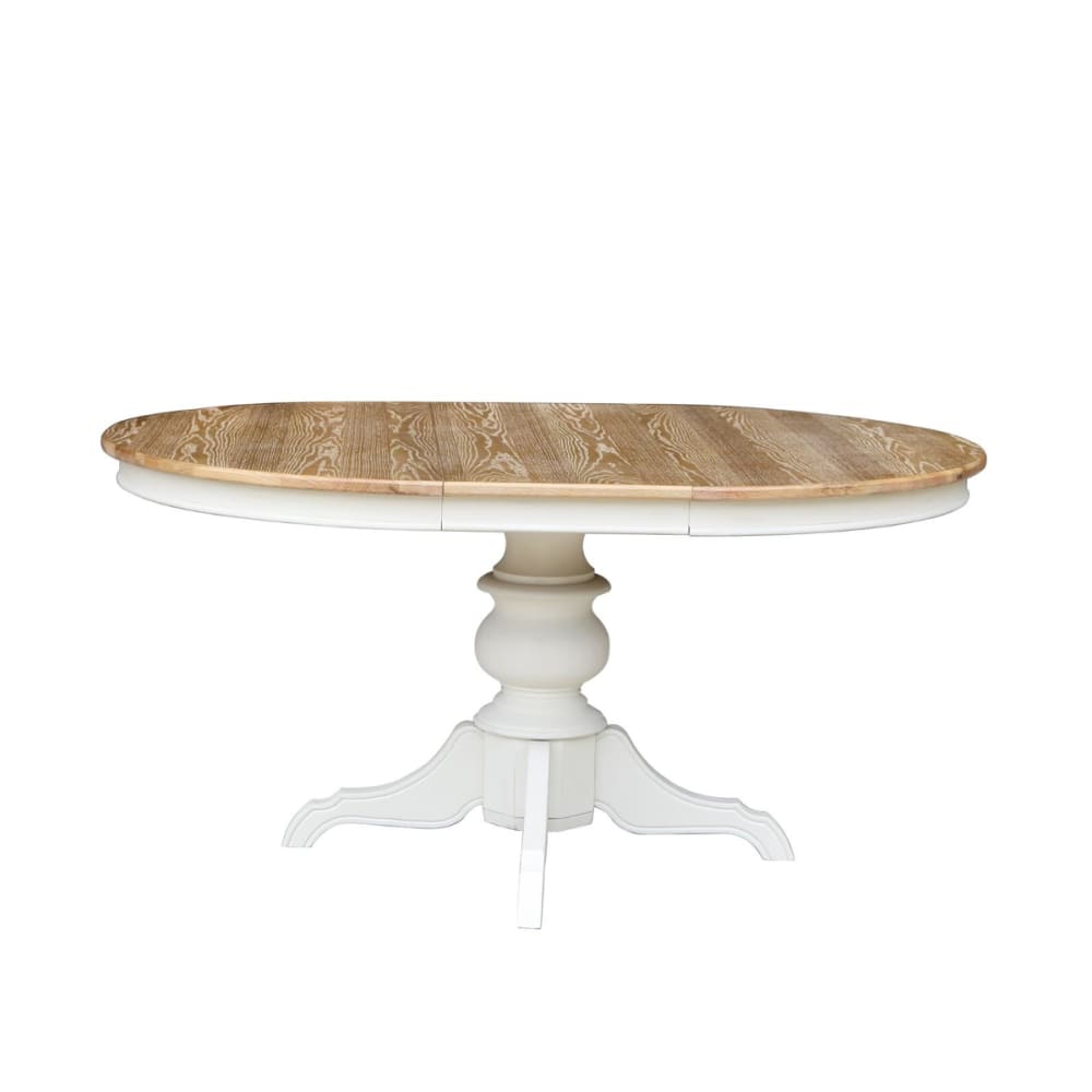 Table ronde en chêne 1 rallonge 4/6 couverts blanche