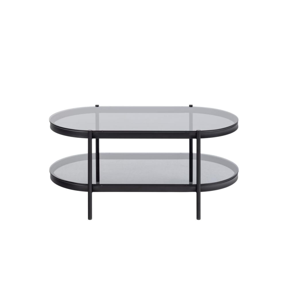 Table basse ovale en verre et métal noir
