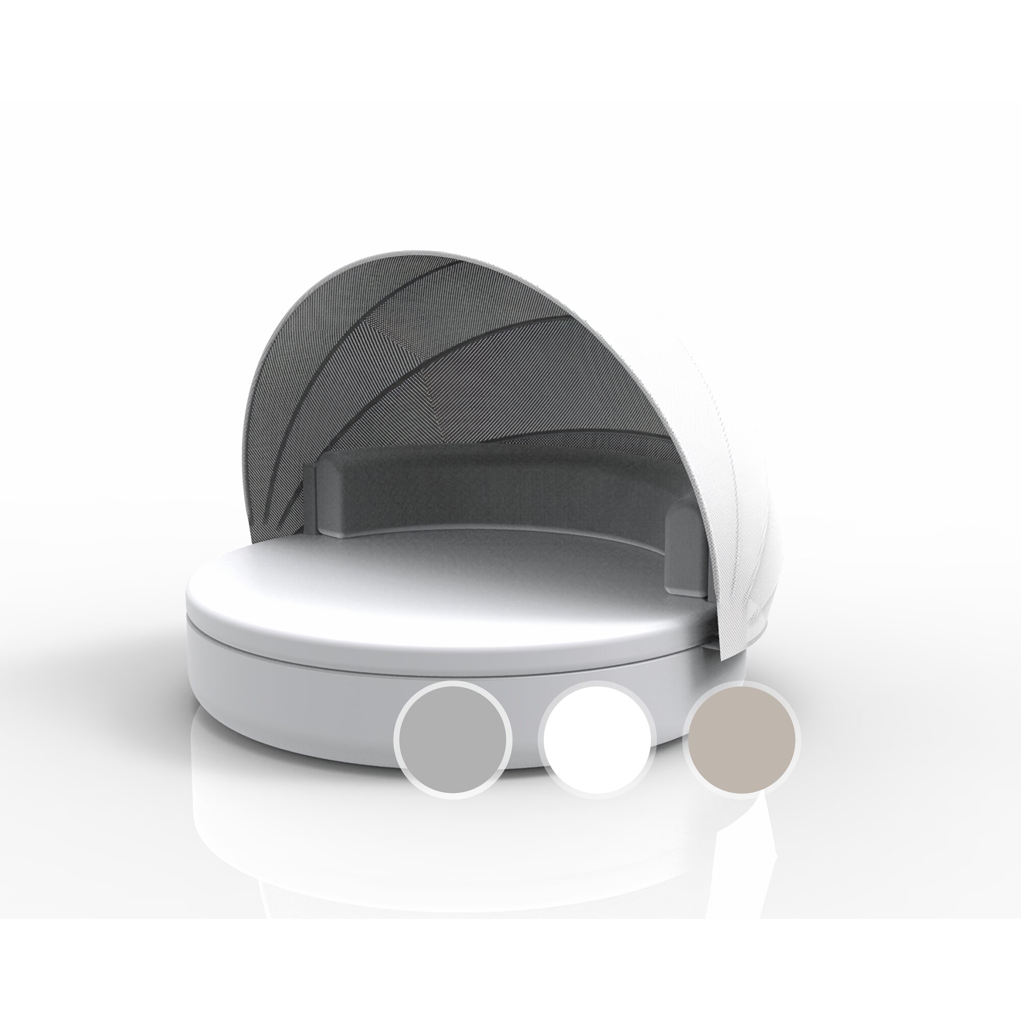 Vondom »ULM« Outdoor Daybed mit fester Rückenlehne inkl. Faltdach Ecru mit Bezug Silvertex Ecru 0009 / Lackiert Hochglanz / Sunvision Ecru