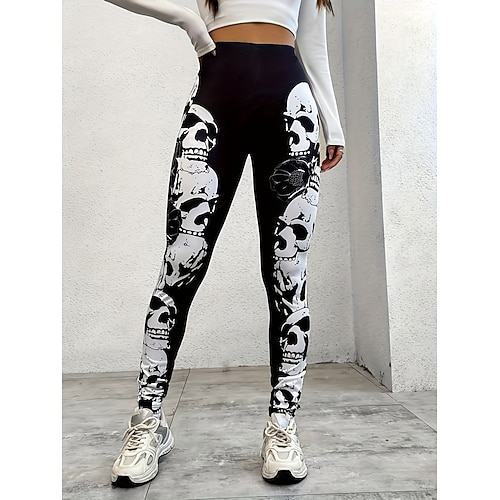 Leggings da donna Vacanza Moda Vintage Lunghezza Caviglia Alta Vita Grafica Stampa Teschi Morbido Traspirante Elastico Formale All'aperto Vacanza Nera Primavera Autunno Inverno Slim Fit