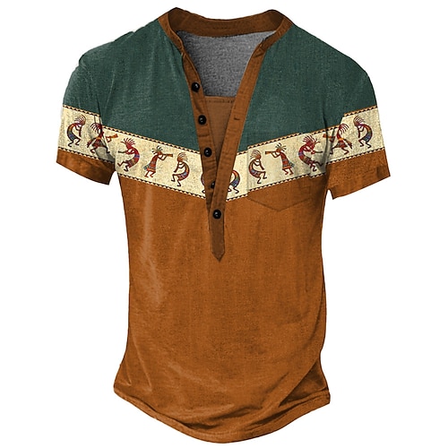Per uomo Sfumatura Motivo Geometrico Camicia Camicia con Bottoni Manica Corta Moda Designer Casual Casuale All'aperto Estate Primavera Collo ripiegato Stampato Blu Verde scuro Viola Verde Cachi