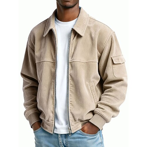 Per uomo Giacca in Velluto a Coste Casuale Quotidiano Tasca Autunno Inverno Tinta unica Vintage Quotidiano Colletto a Camicia Regolare Nero Verde chiaro Blu marino Verde scuro Marrone Giacca