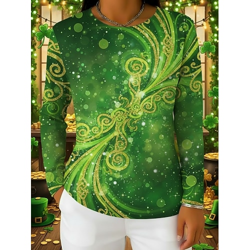Festa di San Patrizio Per donna Maglietta Grafico Trifoglio Moda Classico Casual Manica Lunga Girocollo Top Regolari Quotidiano Weekend Abbigliamento da vacanza Stampato Verde scuro Verde Estate