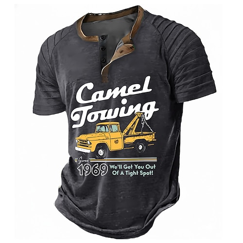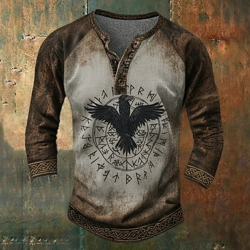 Per uomo Vintage Aquila Maglia Henley Maglietta Manica Lunga Vintage Carino Quotidiano Casuale Ferie Uscire Primavera Autunno Tutte le stagioni Cachi Henley Maglietta Henley