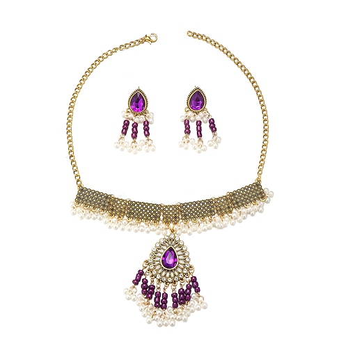 set di gioielli vintage con perle e pietre preziose: collana girocollo con turchese e perle e orecchini pendenti per donna