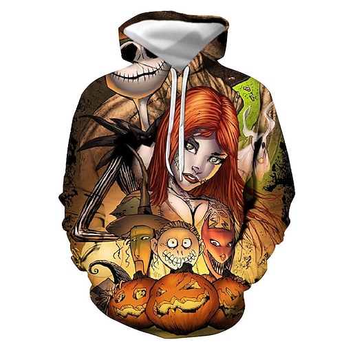 Jack Skellington Felpa con cappuccio Cartone animato Manga Manga 3D Tasca frontale Grafica Tasca a marsupio Per Da coppia Per uomo Per donna Per adulto Halloween Carnevale Mascherata Stampa 3D Casual