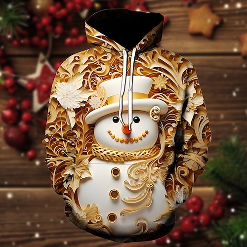 Natale Pupazzo di neve Felpa con cappuccio Felpa con cappuccio natalizia divertente 3D Natale Tasca frontale Grafica Per Da coppia Per uomo Per donna Per adulto Natale Carnevale Stampa 3D Feste