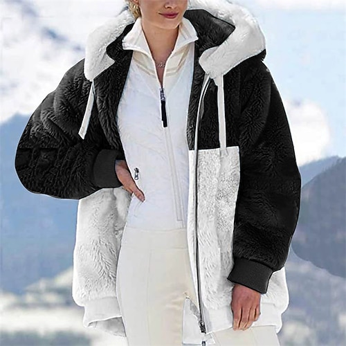Per donna Giacca in Pile Cappotto invernale Giacca imbottita Con zip Tasca Manica Lunga Top Athleisure Blocco di colori Antivento Caldo All'aperto Viaggio Sportivo abbigliamento sportivo