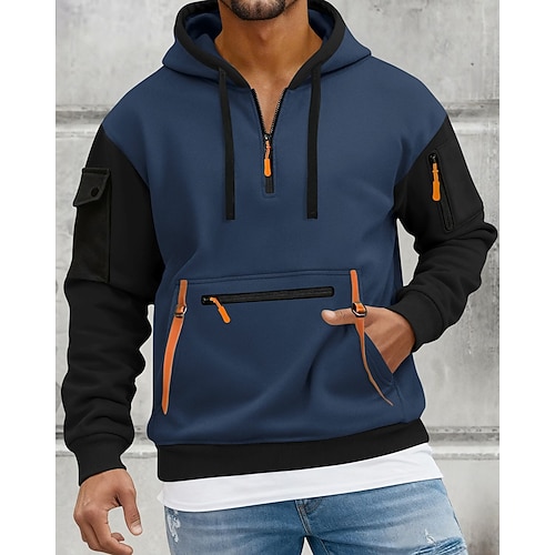 Per uomo Felpa con cappuccio Bianco Giallo Verde militare Rosso Blu marino Con Cappuccio Blocco di colori Semplice Patchwork Blocco di colore Testurizzato Sport Outdoor Casuale Quotidiano