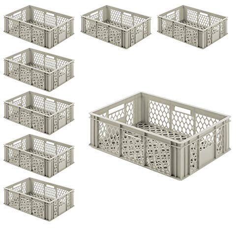 BRB 8x Eurobehälter 'Basic' durchbrochen, 600x400x200 mm, 38,5 Liter, 4 Durchfassgriffe, PE-HD, kieselgrau