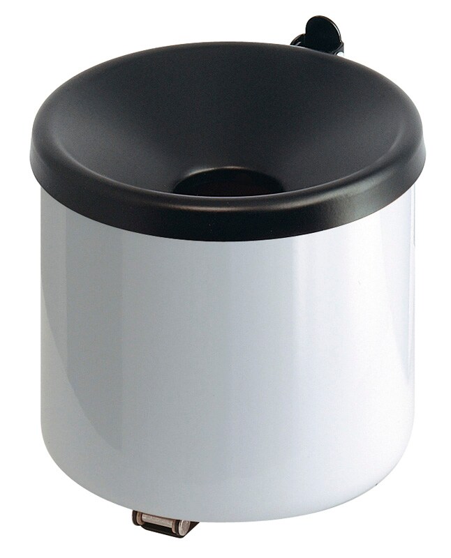 Proregal Runder feuerlöschender Wandaschenbecher | 2 Liter, HxØ 16x16cm | Metal | Weiß mit schwarzem Deckel