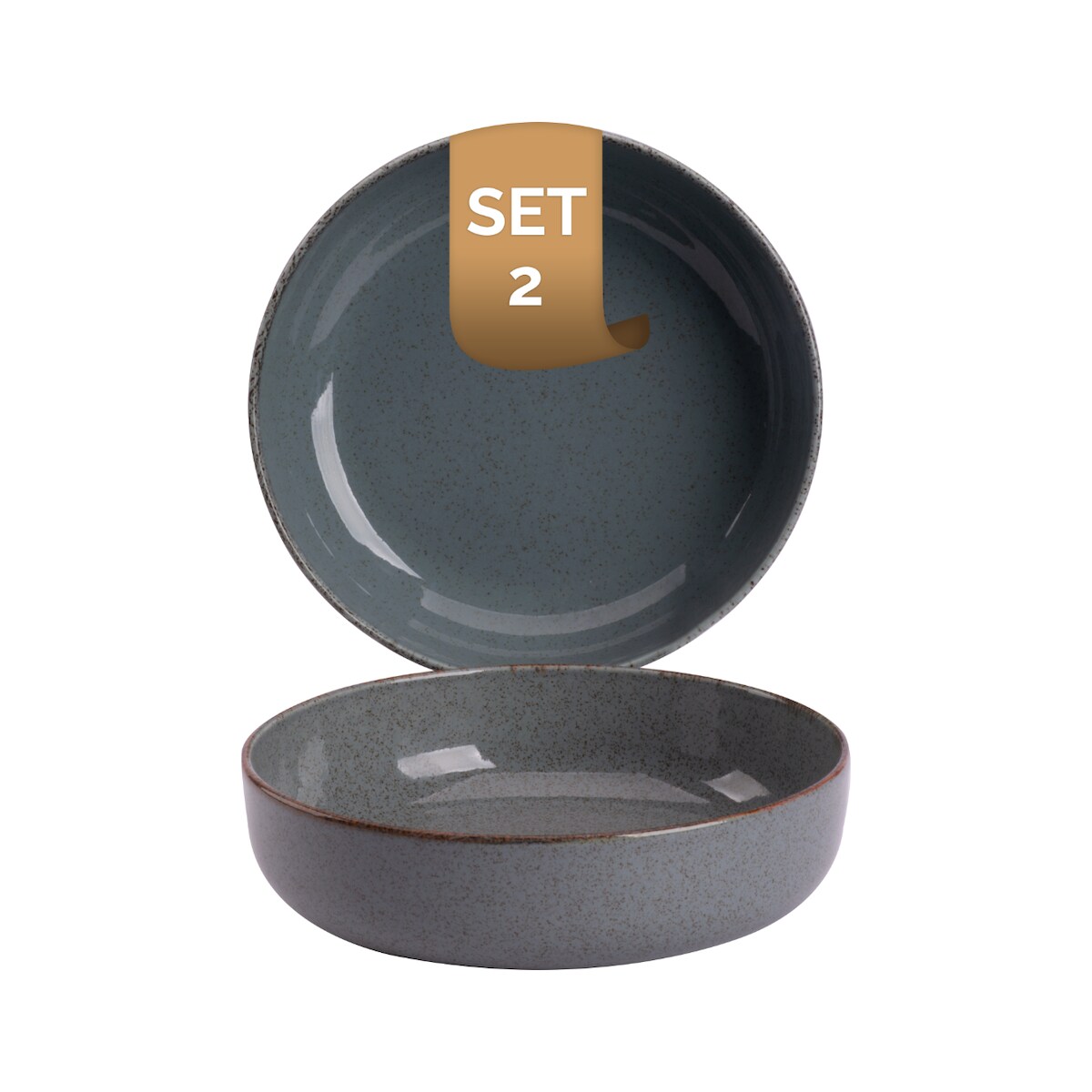 2 x Palmer Antigo Schalen, 0,47 Liter, Ø 15 cm, leichtes Porzellan, für ein 2 Personen Gedeck, spülmaschinenfest, blau grau braun