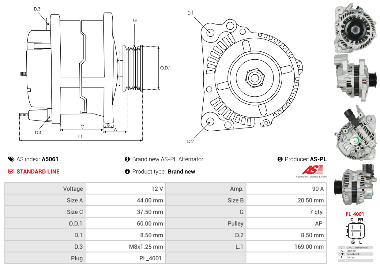AS-PL Generator A5061 12V 90A für MITSUBISHI HONDA AHGA67 31100-RNA-A01 A002TC1391