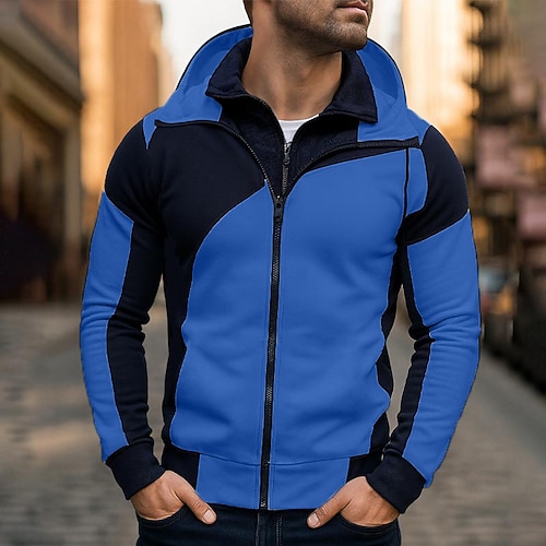 Per uomo Felpa con cappuccio Felpa con cappuccio a zip intera Felpa con cappuccio in pile Bianco Rosso Blu Grigio Con Cappuccio Semplice Patchwork Sport Outdoor Casuale Quotidiano Streetwear Cool