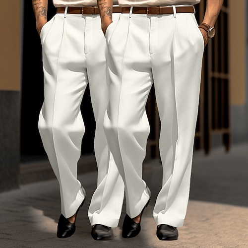 Per uomo Pantaloni Pantaloni Eleganti Pantaloni da Abito Tasca Frontale Gamba Dritta Confezione multipla Semplice Comodità Lunghezza intera Matrimonio Feste Affari Moda Chic Moderno Bianco kaki