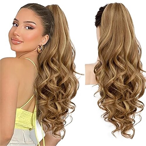 Extension per coda di cavallo ondulata lunga 24'', fermaglio per capelli con clip a forma di artiglio color bordeaux, extension per coda di cavallo lunga e riccia ondulata color rosso vino, fermaglio