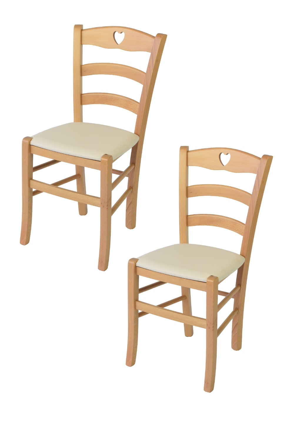 Set 2 Sedie in faggio color naturale e seduta in finta pelle avorio