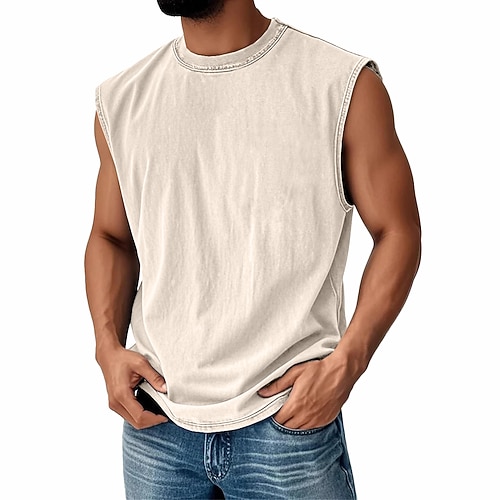 Per uomo Canotta Canottiera Maglietta senza maniche Senza Maniche Girocollo Scollo a V Estate Semplice Moda Classico Di tendenza Puro Casuale Streetwear Sportivo Cachi chiaro Nero Verde Maglietta Top