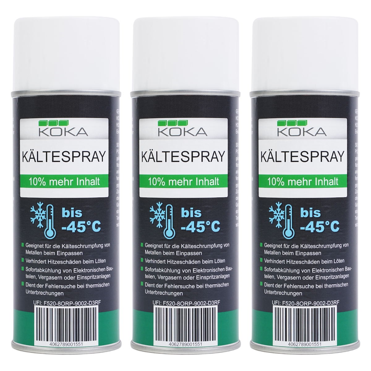 3x KOKA Kältespray –45 °C, 440 ml Spraydose, zur Kühlung & Kälteschrumpfung, brennbar