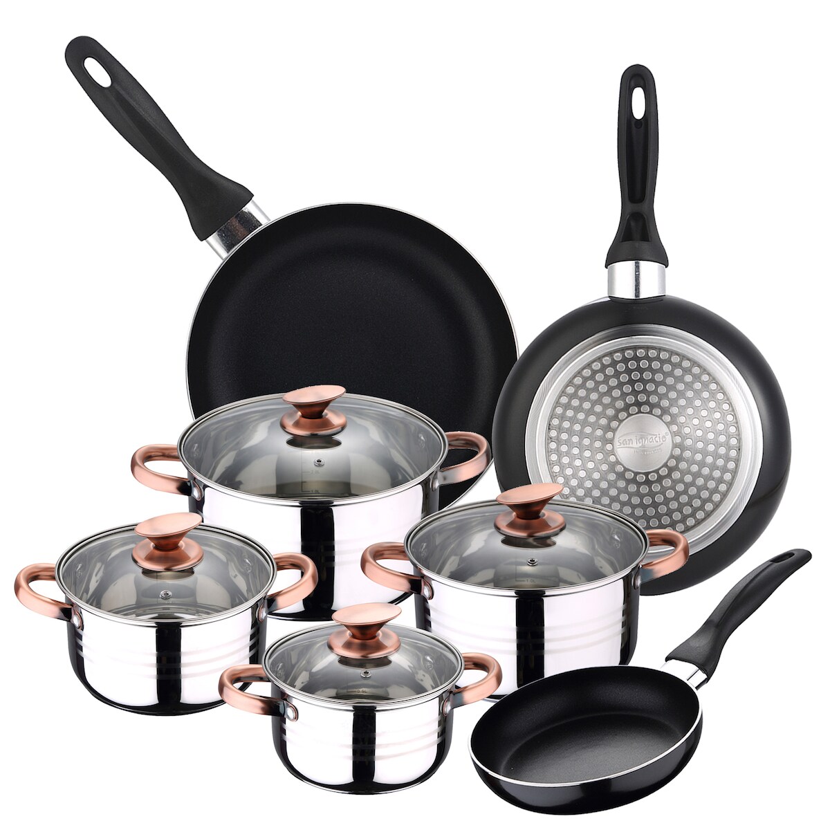 San Ignacio - 8-teiliges Kochgeschirr-Set + Set mit 3 Bratpfannen, 16/20/24 cm