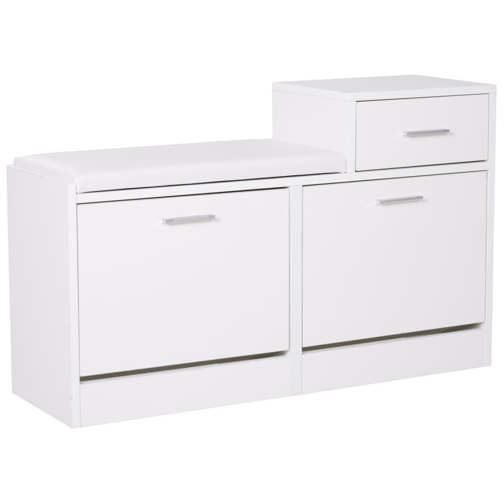 Scarpiera moderna da ingresso con panca imbottita in legno bianco