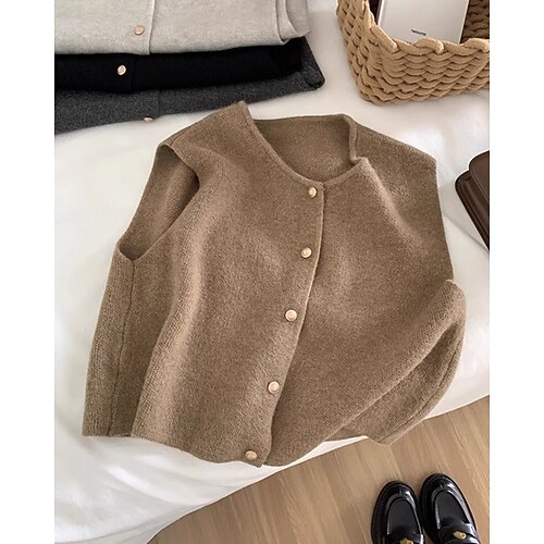 Per donna Felpa Gilet Vintage Moda Streetwear Tinta unica Scollo a V Bottoni Lavorato a maglia Senza Maniche Top Regolari Maglia Quotidiano Ferie Uscire Nero Albicocca Primavera Autunno