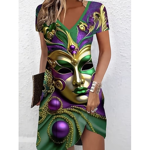 Per donna Vestito longuette Abito casual Vestito svasato Abito linea A Abito estivo Streetwear Linea A Da mare Strada Per eventi Standard Floreale Manica corta A V Nero Rosso Blu Verde Estate