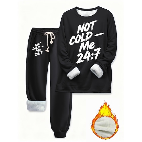 Per donna Quotidiano Elegante Set da due pezzi Tuta Set di Pantaloni Manica Lunga Girocollo Lettera Coulisse Stampato Casuale Quotidiano Nero Rosa Blu Autunno Vestibilità regolare
