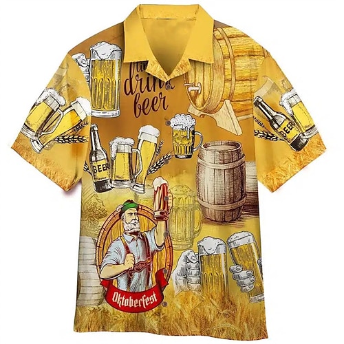 bavarese Monaco Tedesco Camicie hawaiane Camicia Aloha Birra Grafico per Per uomo Adulti Stampa 3D per Carnevale Birra Oktoberfest Vacanza Feste