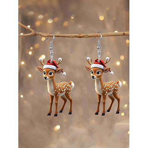 orecchini a forma di renna in acrilico da donna, regalo di Natale, grazioso design natalizio con cappello di Babbo Natale, divertente accessorio festivo per feste e riunioni