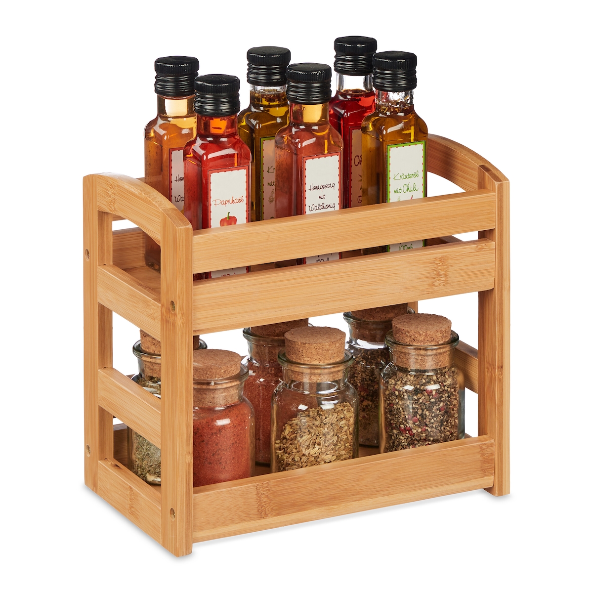 Relaxdays Gewürzregal Bambus, 2 Etagen, stehend, HBT: 23 x 25,5 x 15,5 cm, Gewürzständer für Arbeitsplatte, Küche, natur