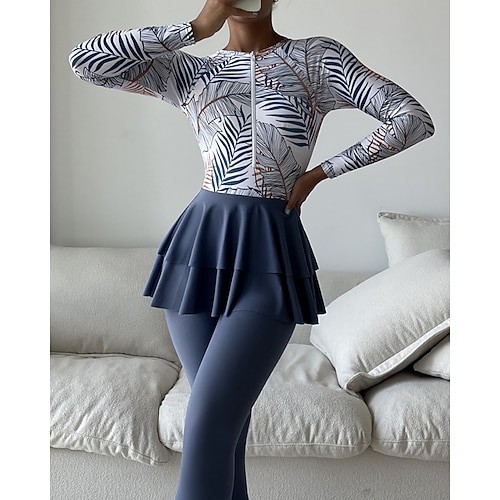 Per donna Top sottomuta Costume da bagno 2 pezzi Tropicale Ultra Leggero (UL) Protezione UV Elastico Manica Lunga Costume da Bagno Con zip Surf Snorkeling Primavera