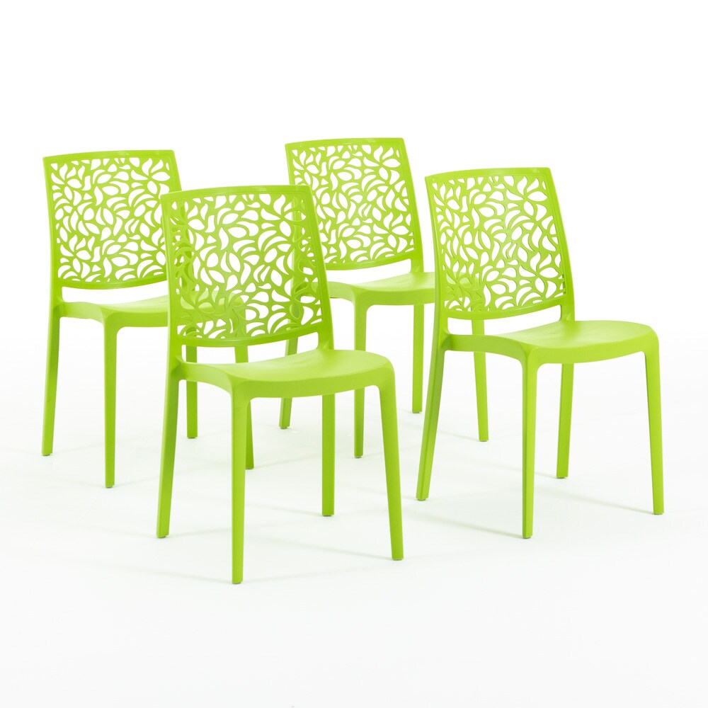 RATTATAN Set aus 4 stapelbaren Stühlen aus Polypropylen mit Glasfaser für Garten oder Innenbereich,wasserabweisend und widerstandsfähig–BARBARA–Creme