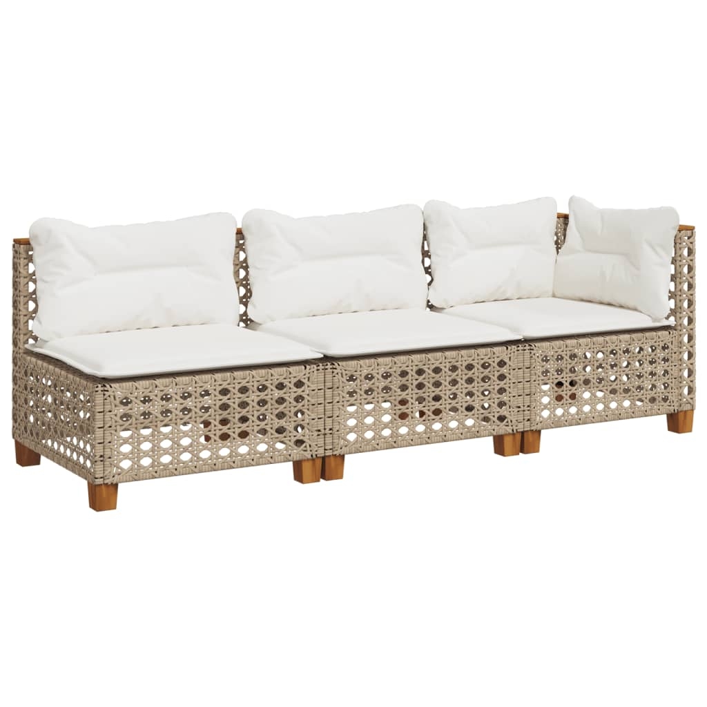 vidaXL Gartensofa mit Kissen 3-Sitzer Beige Poly Rattan