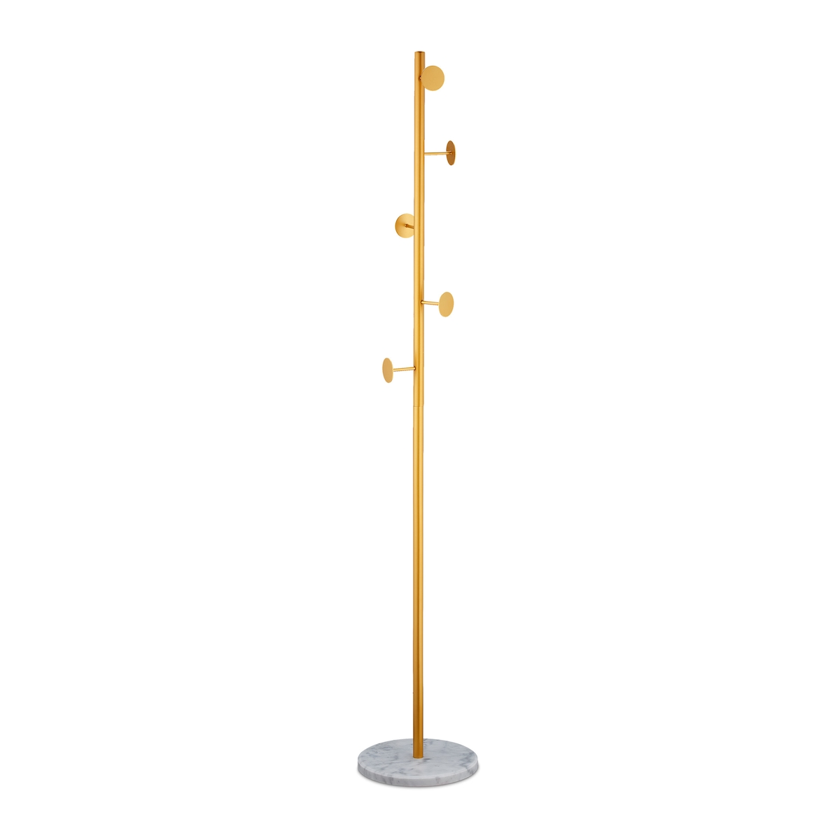 Relaxdays Garderobenständer Marmor, freistehender Jackenständer, 5 Haken, Standgarderobe, HxD: 172 x 29 cm, weiß/gold