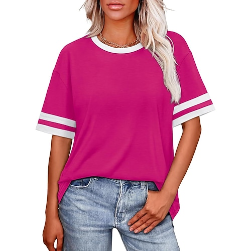 Per donna Maglietta Blocco di colori Casual Manica Corta Girocollo Top Regolari Quotidiano Uscire Weekend Patchwork Blu Nero Bianco Rosa Rosso Estate Primavera