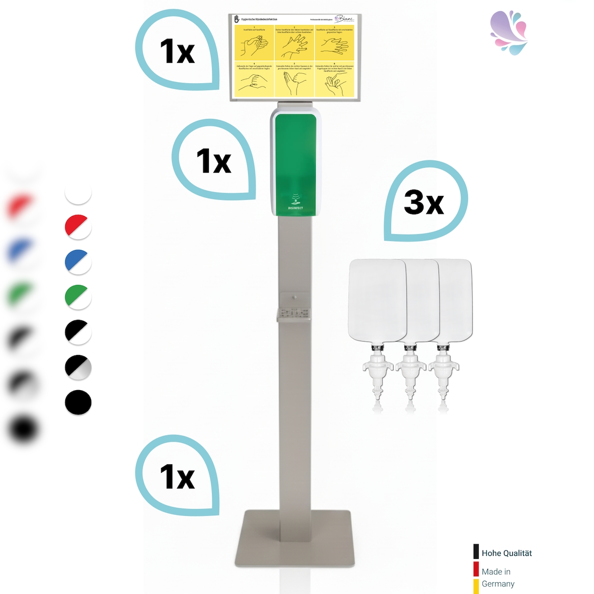 Blanc HYGIENIC SET: Desinfektionsspender SENSOR Cosmos +Bodenständer Edelstahl +Infotafel +3x 1-Liter Hautdesinfektion +prof. Hygieneplan