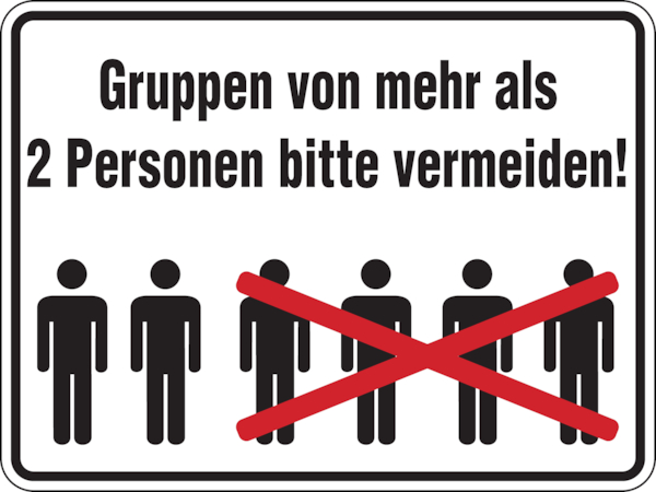 Hinweisschild, Gruppen von mehr als 2 Personen bitte vermeiden - 300x200x1.5 mm Kunststoff