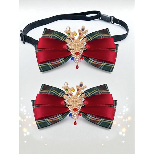 Set di papillon natalizio da donna con renna, fiocco di nastro scozzese rosso con ciondolo a forma di cervo con strass, elegante accessorio per le feste natalizie da donna ragazze