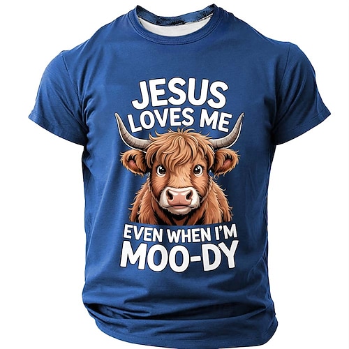 Gesù mi ama anche quando sono lunatico, maglietta divertente con mucca delle Highlands, gioco di parole religioso, maglietta grafica, animale carino, maglietta blu, abbigliamento, abbigliamento, s m l