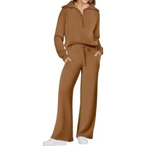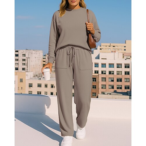 Per donna Tuta da 2 pezzi Felpa pullover Set di tute da ginnastica Coulisse con tasca Tinta unita Completo Abbigliamento Autunno Nero Cachi Allenamento All'aperto Viaggio Vita Alta Leggero Di tendenza